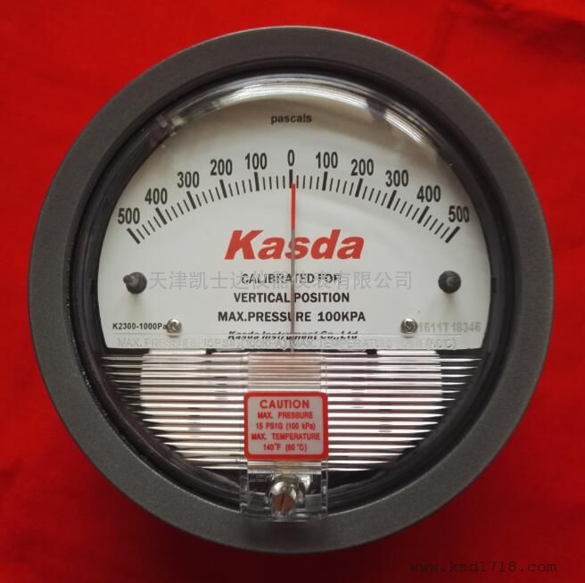 凯士达K2300-1000PA指针微压差压表,正负风压压力表被广泛应用于医药行业GMP认证专用仪表;除尘专用仪表;用于测量药厂、电子厂洁净室洁净厂房的正负压差,暖通空调,净化空调,净化台风淋室专用表,洁净空调过滤网压差的检测等 技术指标: