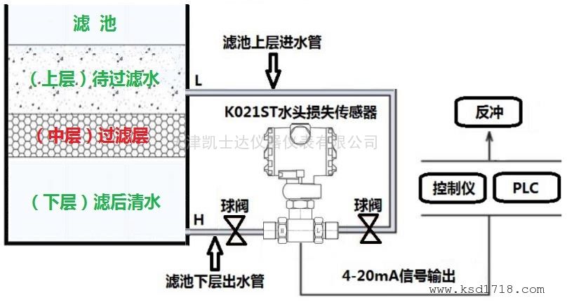 天津凯士达仪表精品系列产品K021ST阻塞仪 0-10米水头 输出4-20mA 精度0.01米 滤池专用水头损失仪,产品精度高,测量数值稳定,数字显示控制可远传接入PLC、变频器及工业计算机或集散系统接口相连接,实现远程显示监测控制,产品采用进口芯片,精度高,测量准确,稳定性好,融合硅精蚀工艺和硅晶片叠合技术,经精密温度补偿、放大处理,转换成4~20mA标准信号,广泛应用于自来水、污水处理厂滤水池的检测,以及供水系统的快滤池、压力滤池,准确直观显示测量数值。