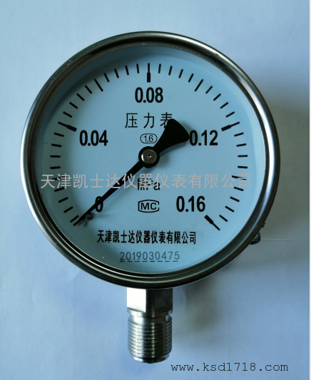 天津凯士达精品系列产品YTF-100气体液体水油不锈钢压力表 0-250MPA ,导压系统(包括接头、弹簧管、限流螺钉等)、齿轮传动机构、示数装置(指针与度盘)和外壳(包括表壳、表盖、表玻璃等)所组成,通过表内的不锈钢敏感元件(波登管、膜盒、波纹管)的弹性形变,再由表内机芯的转换机构将压力形变传导至指针,引起指针转动来显示压力。对于在外壳内充液(一般为硅油或甘油)的仪表,能够抗工作环境振动较剧和减少介质压力的脉动影响。广泛应用于石油、化工、化纤、冶金、电站、食品等工业部门对耐腐蚀、耐高温要求较高的工艺流程中测量各种流体介质的压力。