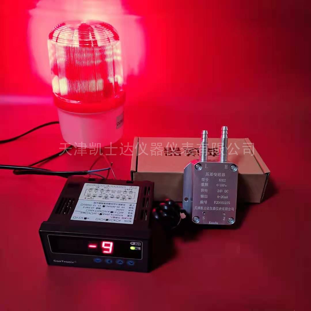 天津凯士达精品系列K022除尘器差压报警仪,4-20mA在线式差压传感器/变送器,风机通风管道压力传感器(变送器)/差压传感器(变送器),选用进口芯体,准确度高,测量数值稳定,除了电压输出,还可以选择4-20mA标准模拟量电流输出以及0-5V或0-10V电压输出,选配KCH6二次仪表,起到显示控制作用,能外接声光警示灯进行在线超压报警。