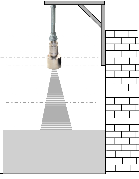 传感器安装应考虑电缆线的保护要求,建议先将电缆线穿过水管后,再将水管拧到传感器接头上(*好将传感器接头缠生胶带后拧进水管),其它外连接件与水管直接联接,电缆线避免安装连接件的受力,以免电缆线断裂致使传感器永久损坏。传感器安装示例如下: 特别提示:当测量池中被搅动或被液体冲击致使污泥或悬浮微粒尚未沉淀而未形成可反射界面时,由于悬浮微粒对超声波的漫反射作用而不能形成定向回波,所以此时称之为“无界面浑浊介质”,界面仪显示是一个随机值,或者显示为“nor”,即收不到回波。此现象不是仪器故障。待静止沉淀一段时间形成可反射界面后,界面仪将随着泥浆沙粒的界面位置而显示其高度值。