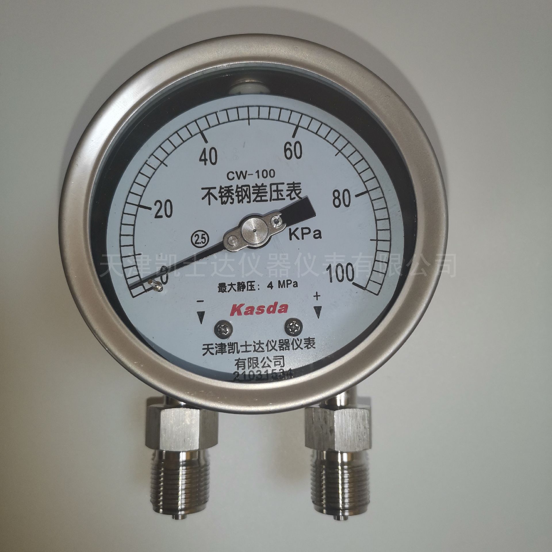 产品简介:品牌:凯士达 ;型号:工厂通用 ;加工定制:是 ;精度等级:2.5 ;最大工作压力:4 MPa;外形尺寸:100 mm;适用范围:液体、气体 ;量程范围:可选 kPa