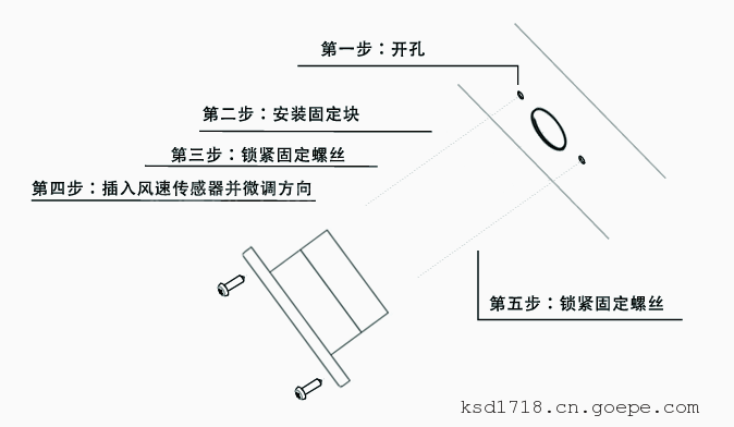 - 如需管道固定安装,推荐使用KV621风速风量传感器;