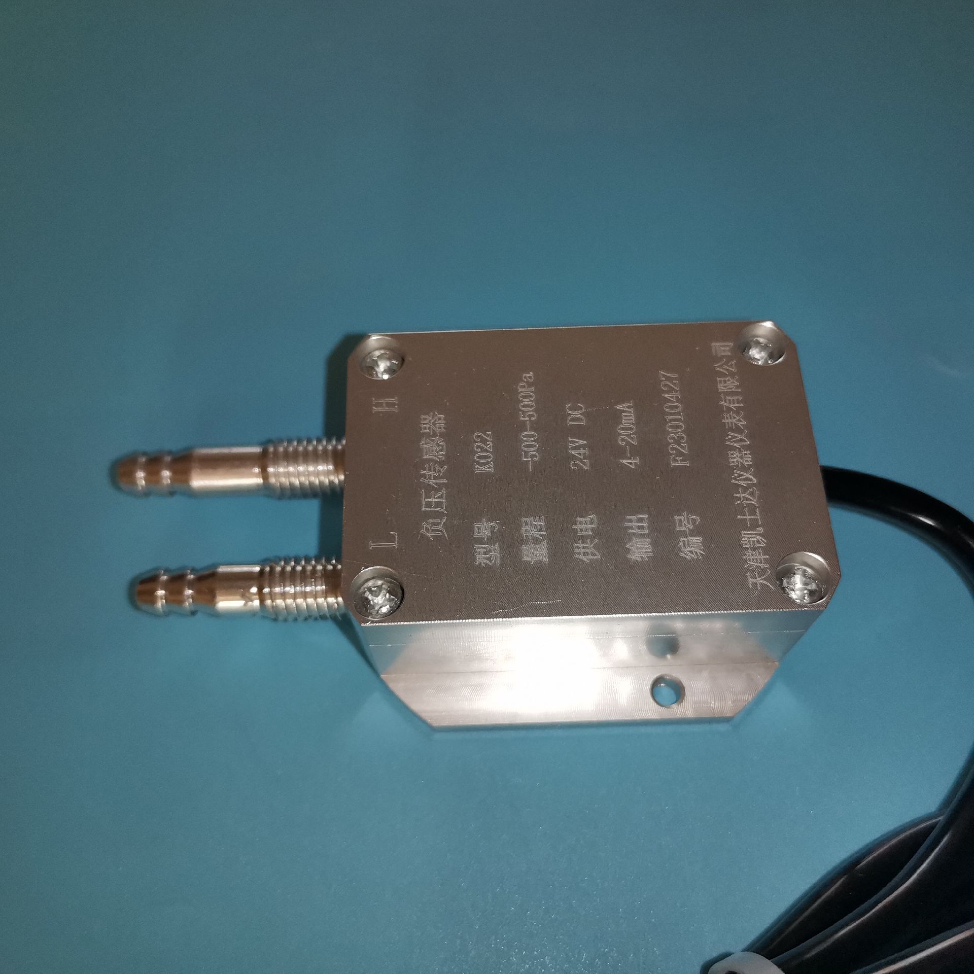 天津凯士达系列K022系列负压传感器 -500pa微压风压差压变送器 在线4-20mA,选用进口高精度、高稳定性芯片,采用铝合金外壳以及应力隔离技术组装而成,经精密温度补偿、放大处理,转换成4~20mA、0~10V、RS485标准信号,与二次仪表、PLC、变频器及工业计算机或集散系统接口相连接。